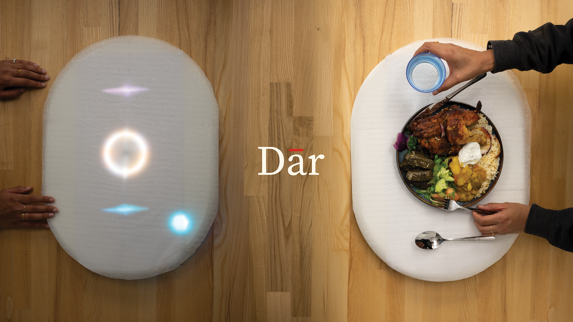 Dār explores how forced displacement reshapes individuals’ relationships with home, memory, and everyday objects, and how design might support emotional continuity after loss. Grounded in trauma-informed and participatory research, the project investigates how rituals, sensory cues, and material familiarity contribute to feeling at home following displacement. Drawing on principles from calm technology and tangible user interaction, Dār proposes an ecosystem of everyday domestic objects that use effortless, ambient communication to support shared rituals across households. By embedding connection within familiar practices such as eating together, arriving home, and saying good night, the project positions object-based ambient systems as a gentle design approach for fostering presence, belonging, and relational continuity across distance.
