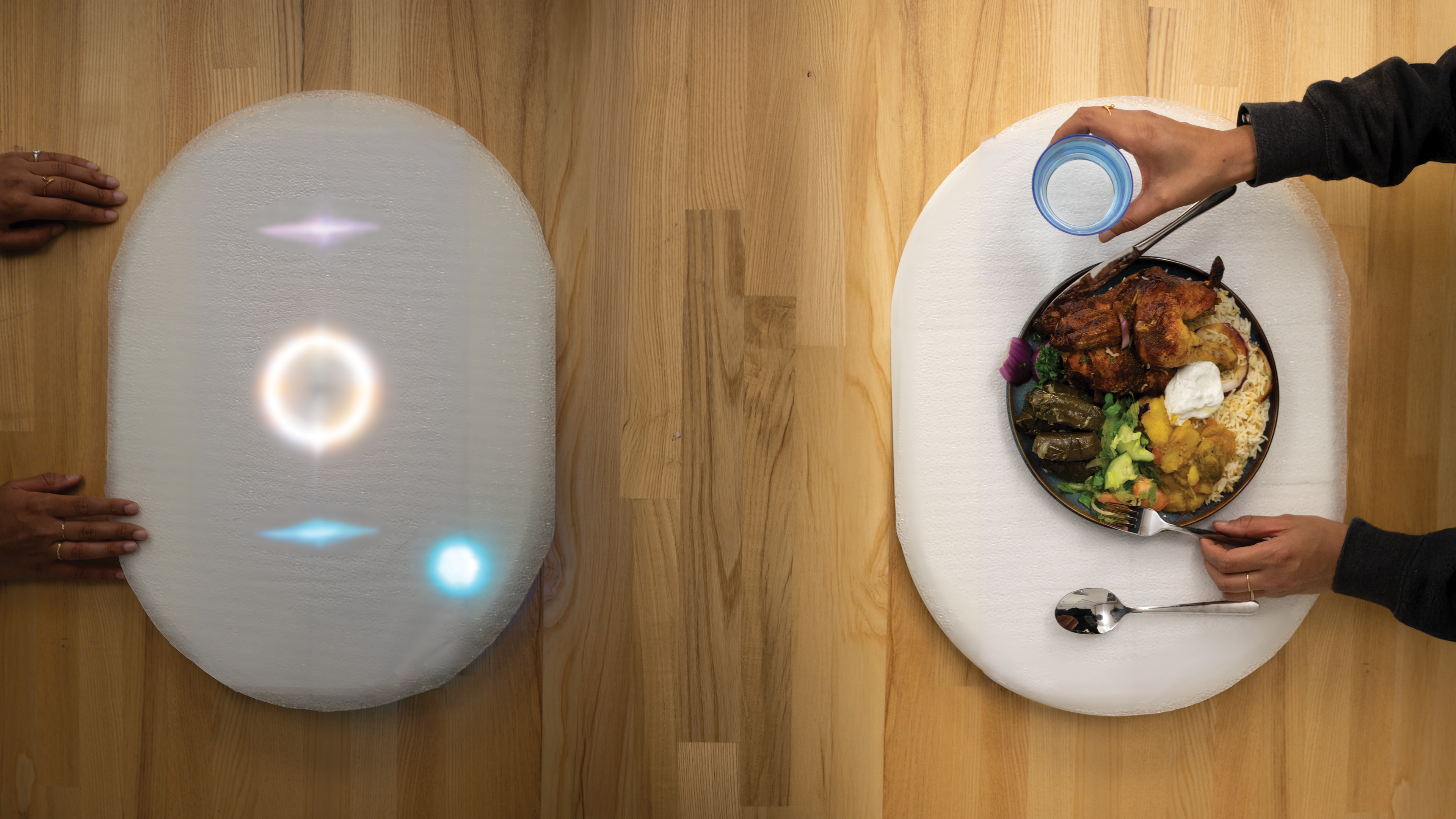 • Interaction: Placing a plate triggers a soft ambient glow.